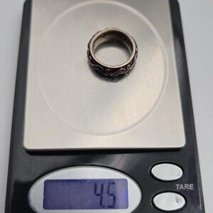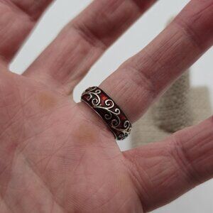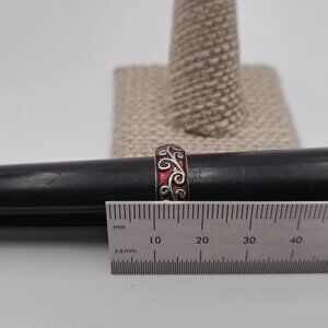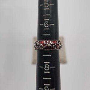 Size 7 Sterling Silver Red Enamel Floral Vine Style Ring A2614