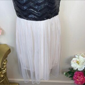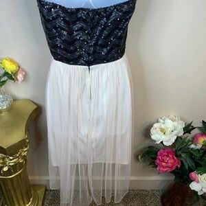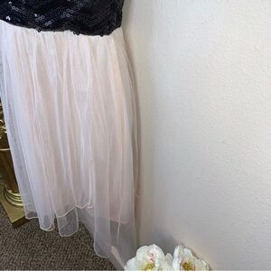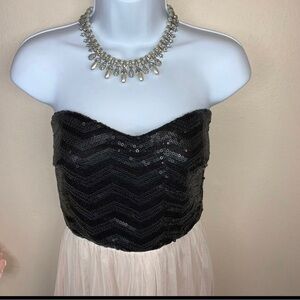 Size 7 Studio Y Black Sequin Pink Lace Strapless Cocktail Event Party Dress