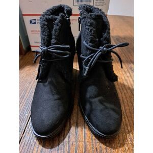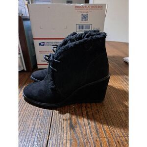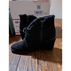 Size 7 Universal Thread Black Wedge Heel Side Zip Booties Ankle Boots Shoes
