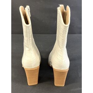 Size 7 Women's Lulus "Eleora" Bone Crocodile-Embossed Mid-Calf High Heel Boots