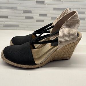 Adrienne Vittadini wedge shoes, size 7. Great for summertime. Front is black, wedge is rope material. Wedge heel is about 2 1/2 inches high.