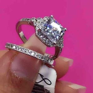 Brand new high quality 4CT 925 sterling silver Engagement /Wedding ring Fashion Jewelry AAA Cubic Zircon Diamond women Wedding ring set still have Size 6/7/8 free box
