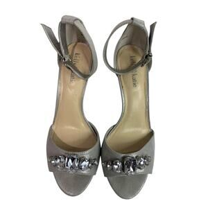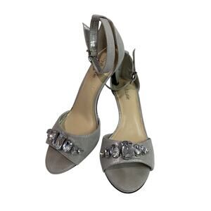 Size 7.5 Kelly & Katie Silver Bejeweled Ankle Strap 3 Inch Heels