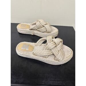 Size 7.5 Knotty Natural Raffia Rope Nude Tan Platform Slide Sandal Beach Resort