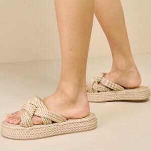 Dirty Laundry Knotty Natural Raffia Rope Platform Slide Sandals Beachwear Resortwear