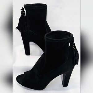 Size 7.5 Vince Camuto Black Suede Peep-Toe Ankle Boots