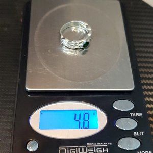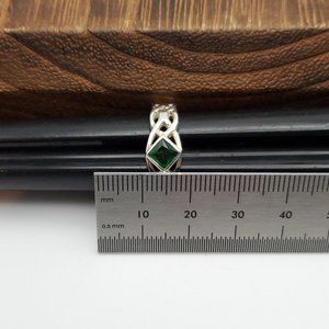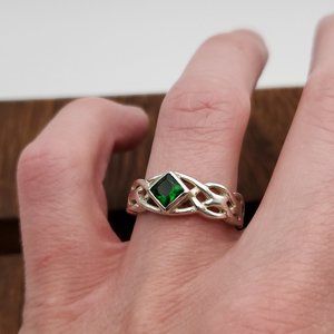 Size 7.75 925 Sterling Silver Celtic Style Green Glass Gem Ring