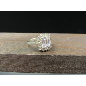 Size 7.75 Sterling Silver Tarnished Face Emerald Cut CZ Halo Band Ring