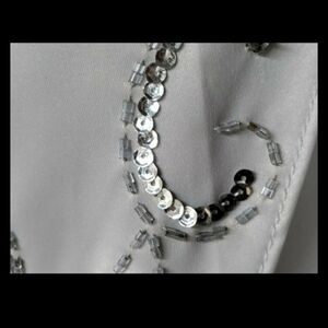 Brand: City Triangles. Sleeveless, full length, thin straps, zipper in back. Silver body color with shiny silver sequin and gem patterns.