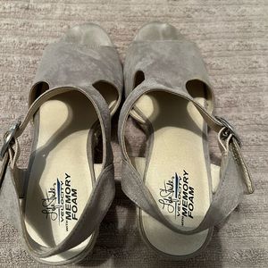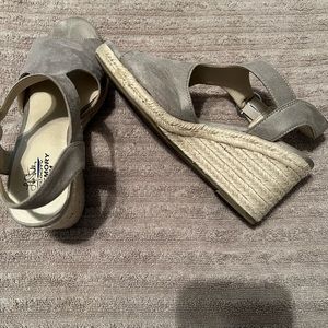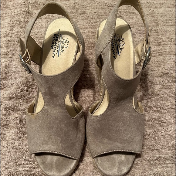 Lifestride wedge sandals. 2.50 inch heel. Very good condition. Color is a grayish taupe.