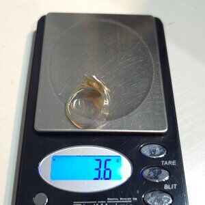 The ring has a slight gold hue to it. The accents are also Moissanite Diamonds.
