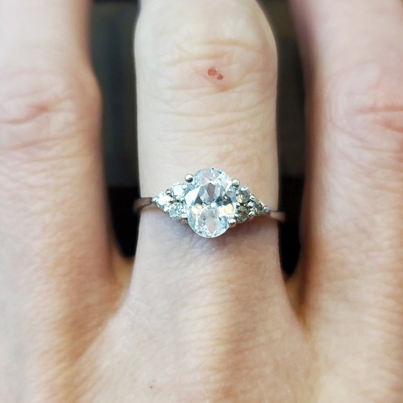 Size 8 925 Sterling Silver Oval CZ With Cluster Accents Ring