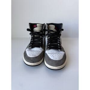 The product is a women's size 8 Air Jordan 1 Retro OG High Washed Grey White sneaker made with leather upper material. Featuring a high top shoe shaft style, this athletic shoe is part of the Air Jordan product line and has a retro theme. The shoe comes in a stylish gray color with a release year of 2022. With the iconic Jordan brand and classic model design, this sneaker is a must-have for any sneaker enthusiast.