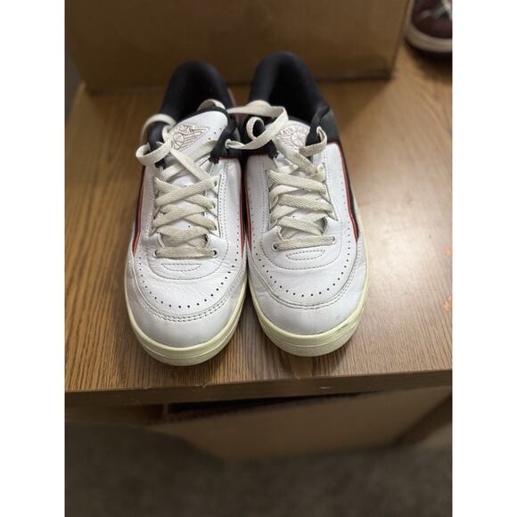 The Size 8 Air Jordan 2 Retro Low Chicago Twist W is a stylish and modern sneaker designed for women. Featuring a low top style, white colorway, and leather upper material, this shoe combines retro design elements with contemporary aesthetics. Part of the Air Jordan product line, this athletic shoe is perfect for those looking for a trendy and comfortable footwear option. The release year of 2023 ensures that this model is up-to-date with the latest trends in footwear design.