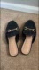 Size 8 | Black Slip-On Shoe with Woven Top & Gold Chain Accent