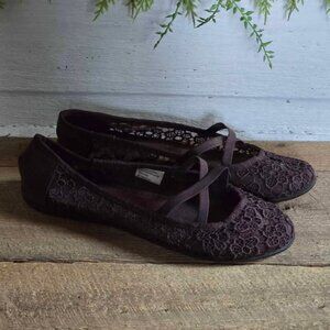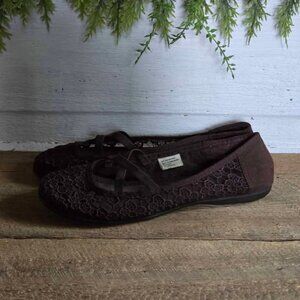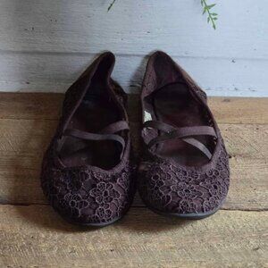 Size 8 Brown Floral Lace Soho Ballet Flats Shoes
