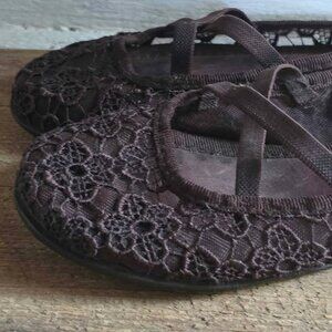 Cute brown floral lace Soho flats size 8. They have some discoloration inside.