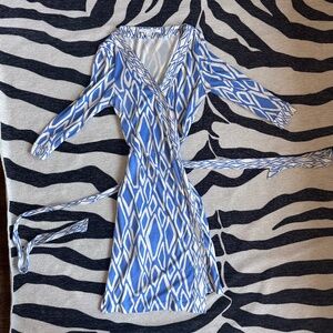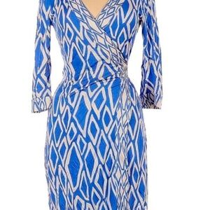 Size 8 Diane Von Furstenberg (DVF) Julian Blue & White Wrap Dress