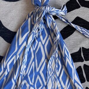 Timeless elegance meets effortless allure. This blue and white Diane von Furstenberg midi wrap dress is a true classic—featuring the iconic silhouette that flatters every figure. With its soft, fluid fabric and striking print, it ties at the waist for a customizable fit that moves with you from day to night. Sophisticated, feminine, and endlessly versatile, it’s DVF at her finest.