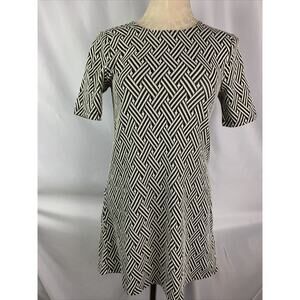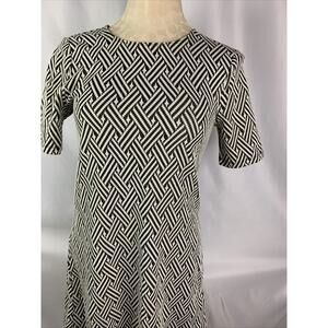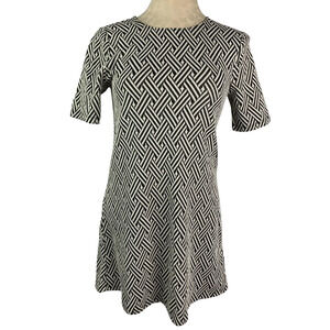 Size 8 Divided by H&M Gray White Pattern Stretch Dress Short Sleeve Zip