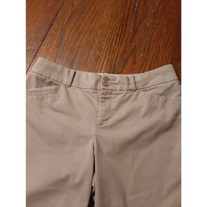 Good Used Condition Women's Size 8 Khaki Tan Dockers Mid Rise Double Button Flat Front Cotton Bermuda Casual Shorts
