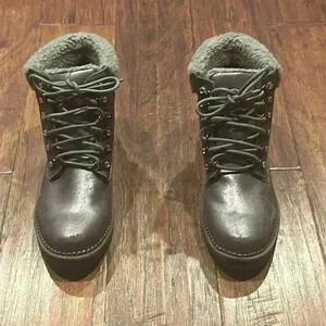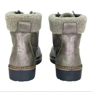 Size 8 - Esprit Candis Grey Faux Leather Faux Fur Trim Womens Ankle Boots