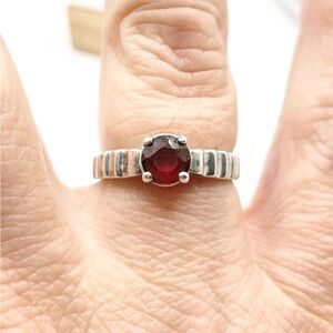 Size 8 Red Garnet gemstone 925 stamped sterling silver ring. Good condition. DQ signed.