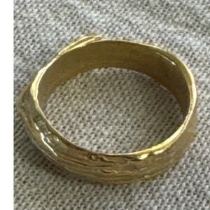 Size 8 Gold Tone Band Light and Dark Wood Grain Pattern Could Be Handmade