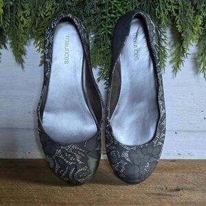 Size 8 Gray Lace Maurices Ballet Flats Shoes