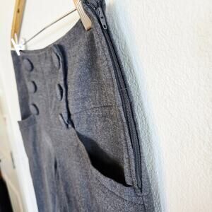 These vintage-inspired H&M sailor slacks blend office chic with timeless retro style. Featuring a high waist, six decorative buttons up the front, two front pockets, and flat back with faux pockets. Soft semi-textured charcoal gray fabric with a slight stretch makes them as comfy as they are classic. Dress them up with a blazer or down with a cropped sweater.