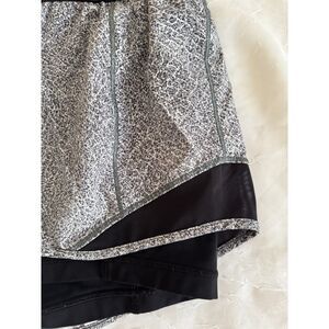 Effortless movement meets signature Lululemon design. These black, white, grey running shorts that are crafted in lightweight four-way stretch fabric with a soft waistband and built-in liner for breathable comfort. The subtle tonal print gives them a modern edge perfect for training, travel, or casual wear. Size 8. Excellent Pre-loved condition.