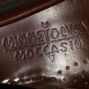 Size 8 Men's Size 8 Men's Minnetonka Moccasin Double Essential Hard Sole Brown Leather ShoesDouble Essential Hard Sole Brown Leather Shoes
