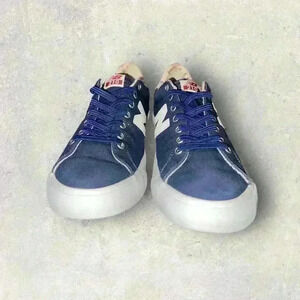This New Balance 210 sneaker is a must-have for any sneaker enthusiast. The navy and white colorway, combined with the lobster-inspired design, makes for a unique and stylish shoe. The canvas upper material is durable and breathable, ensuring comfort during any athletic activity. This sneaker is a great addition to any collection. The shoe is available in a men's size 8 and is part of the New Balance 210 product line. Don't miss out on the opportunity to own this stylish and functional sneaker.