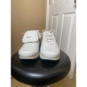 The Nike Air Max Plus Tiempo Phantom Metallic Gold sneakers in size 8 are a stylish and comfortable option for casual wear. Featuring a lace-up closure, rubber outsole, and leather upper, these sneakers are perfect for year-round wear. The metallic gold accents add a touch of flair to the gray color, making them versatile for various occasions. Designed for running and jogging, these sneakers offer both performance and style, with the iconic Nike Air Max product line ensuring quality and durability.