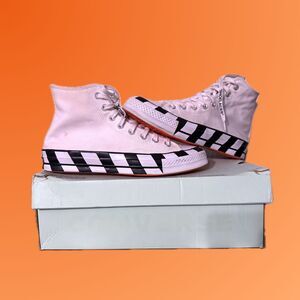 Converse and Virgil Ablohs Off-White teamed up once again to re-release the Converse Chuck Taylor All-Star 70s Hi Off-White. This canvas model served as a follow-up to Ablohs first Converse collaboration that was part of the "The Ten" collection.