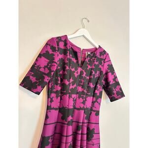 Size 8 Purple Black Floral Striped Scuba Fit Flare Mini Dress Work Knee Length