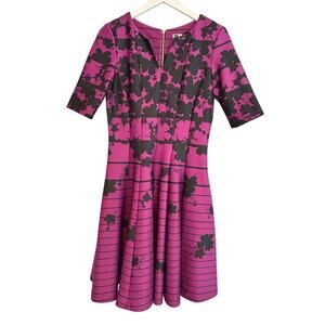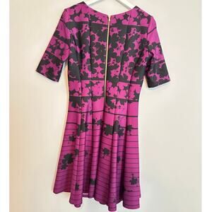 Julian Taylor Size 8 Purple Black Floral Striped Fit and Flare Mini Dress Party