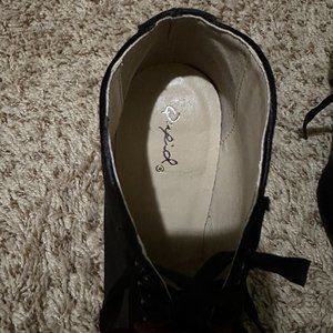 Size 8 Qupid Black Lace-Up Booties with Roses