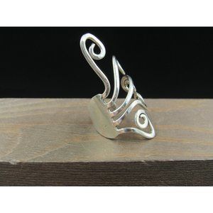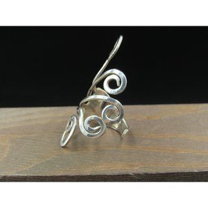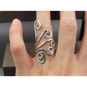 Size 8 Sterling Silver Fancy Swirls Large Finger Band Ring Vintage Statement