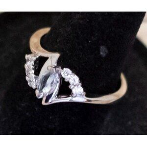 Size 8, Vintage Abstract Round Oval Diamond Gem Sterling Silver Ring by Avon