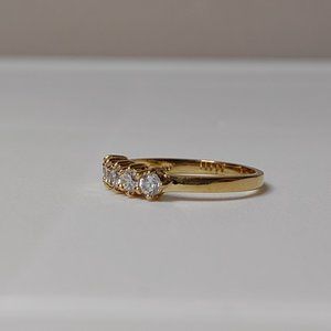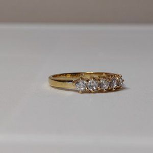 Size 8.25 Gold Tone Ring With Clear Stones. Routine Wear As Pictured. Check Out My Closet For Other Great Items!!! Thank You For Considering Making A Purchase.