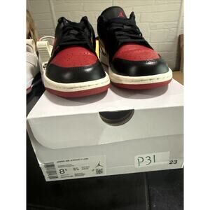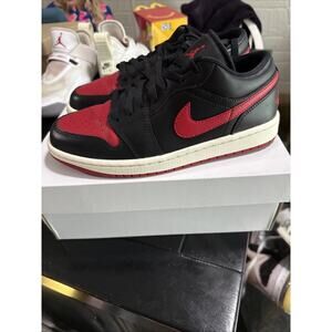 The product is a women's size 8.5 Air Jordan 1 Low Bred Sail shoe in the color black. This athletic sneaker features a low top design, leather upper material, and belongs to the Air Jordan product line. With a release year of 2023, this shoe combines style and comfort for women who appreciate the iconic Jordan brand.
