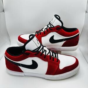 Step up your sneaker game with these classic Air Jordan 1 Retro V.1 Gym Red Chicago sneakers from 2012! These shoes are in great condition and ready to turn heads. Don't miss out on the chance to own a piece of sneaker history.