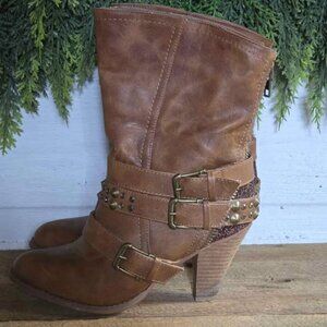 Size 8.5 Brown Glitter Not Rated Studded Buckle Boots
