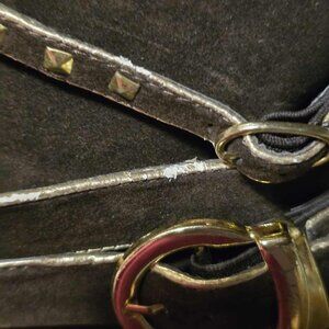 De Blossom Collection brown and gold buckle heels size 8.5. They were worn around the house once but never used otherwise. Some of the gold trim is flaking away in several places. Please see close ups.
