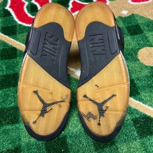Stylish black and gold Air Jordan sneakers with red accents. Perfect for casual wear. Nice cheap pair!