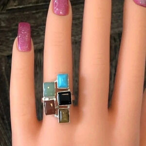 Size 8.5 Multicolor Gemstone 925 Sterling Silver Plated Handmade Ring