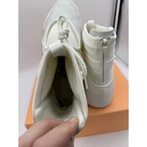 The product is a pair of Nike Air Fear of God 1 sneakers in the Sail colorway, featuring a size 8.5 US shoe size. These sneakers are part of the Nike Air Fear of God product line, designed for men and intended for athletic use. Released in 2019, the AR4237-100 sneakers showcase the iconic Nike brand with a sleek and modern design, making them a popular choice among sneaker enthusiasts.