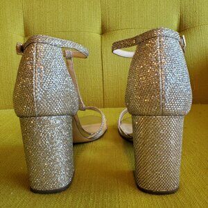 Size 8.5 Nina Haviva Gold T Strap Block Heel Sandal