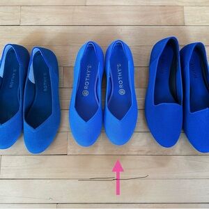Reposhing these shoes that I purchased from @ladoyle2. Color wasn’t quite right for the dress I have. They are a pretty lighter-colored “cornflower” blue! In the last photo you can see them pictured in the middle between two other shades of blue Rothy’s.